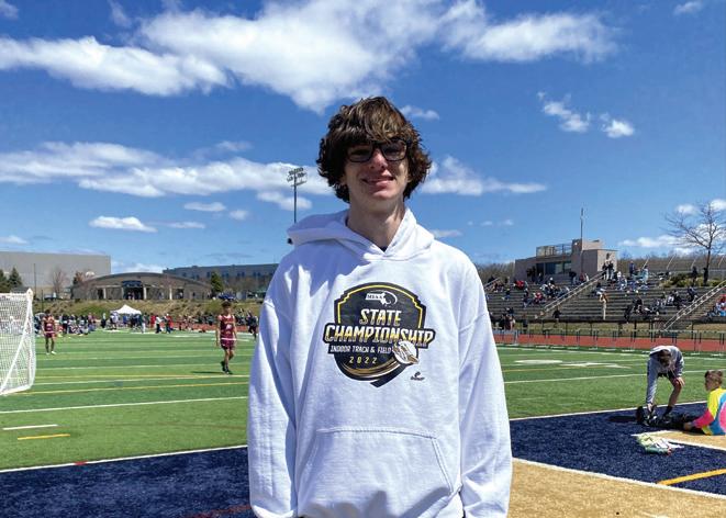 Junior Adam Beckman won first place in pole vault at the Massachu setts Interscholastic Athletic Association (MIAA) District 2 State Track Meet, hosted by Hingham High School, on May 29 with a jump of 11’ 6”.