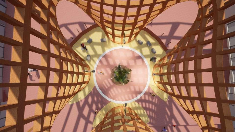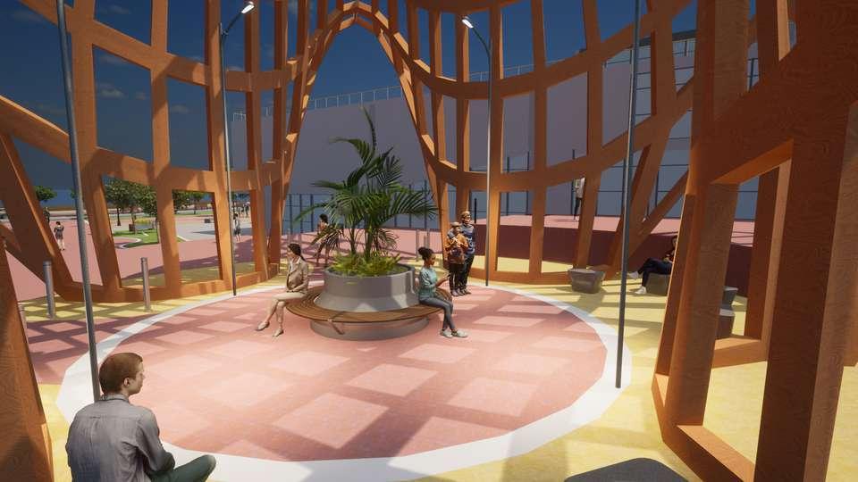 Se busca que la cobertura propuesta sea un espacio donde las personas puedan permacen en su interior, al mismo tiempo que no compita con el proyecto inicial, pero si que este sea un espacio reconocible a la distancia del agrado del visitante