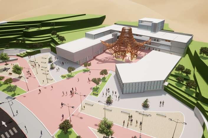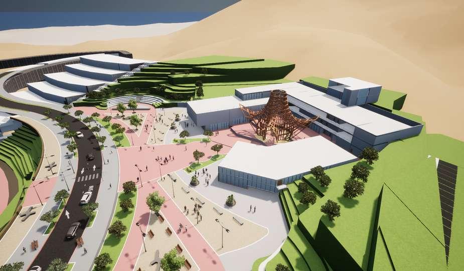 El proyecto se ubica en lo alto del cerro, modificado según la topografía, predomina la vegetación por el contexto, trabaja en su interior actividades como auditorio, zona comercial, restaurantes, cafetería, salones talleres , zonas recreativas,biblioteca, museo y galerías, cuenta con un teleférico en la parte superior que permite el acceso de la parte de la Av. Nueva Toledo hasta el Centro cultural.