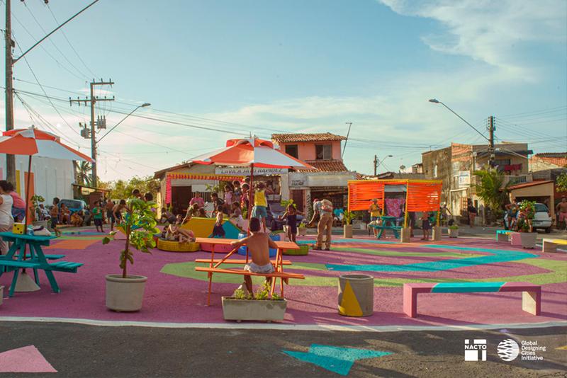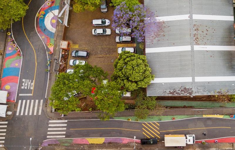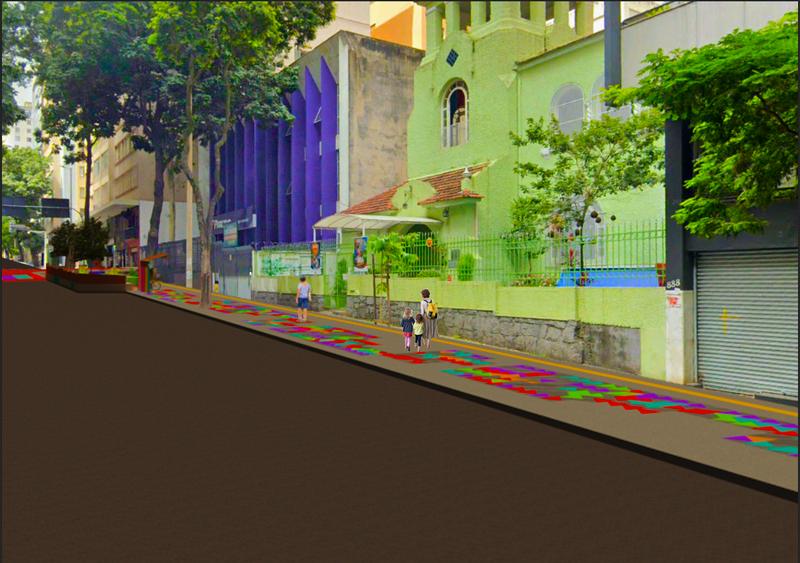 Pintura artística e interativa na rua Área para inserção de mobiliário