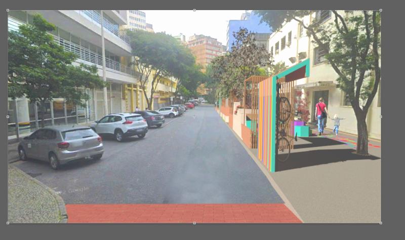 Figura 60: Retirada de uma pista de estacionamento rotativo para alargamento da Calçada com instalação de mobiliário.