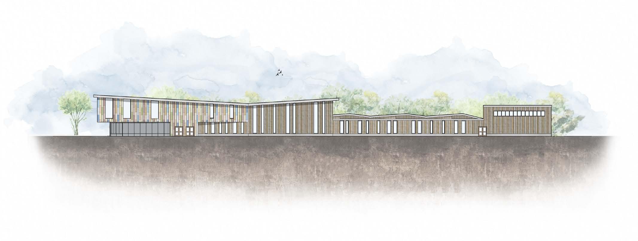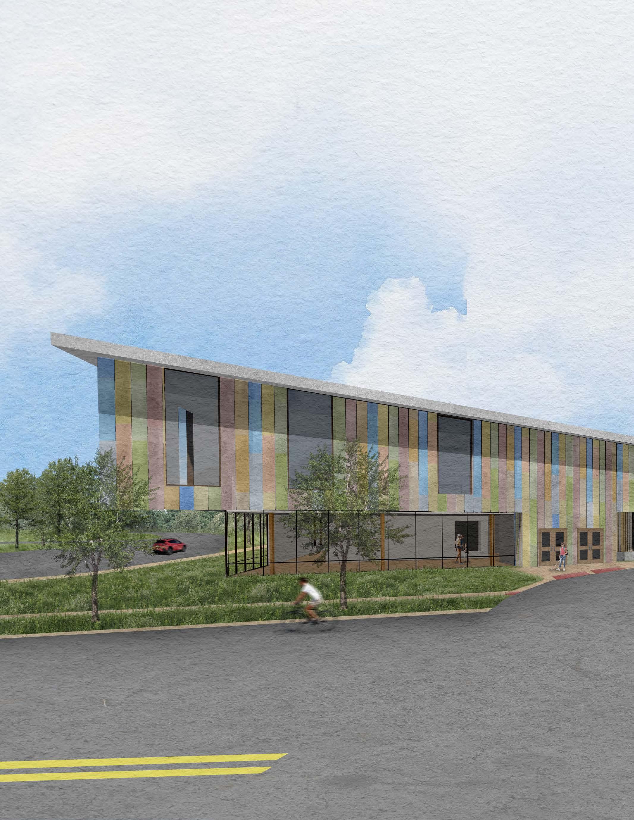 Colorado colors inspire the colorful facade. Throughout the school color is used as a symbol of diversity and inclusion. A common misconception about visual impairment is that people are completely blind. The reality is that visually impaired people can often see changes in light and color. In the art core students will be encouraged to participate in different arts and experiment with color, music, and other tactile arts.