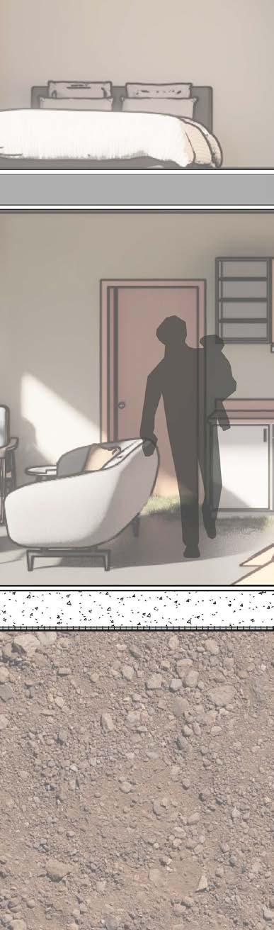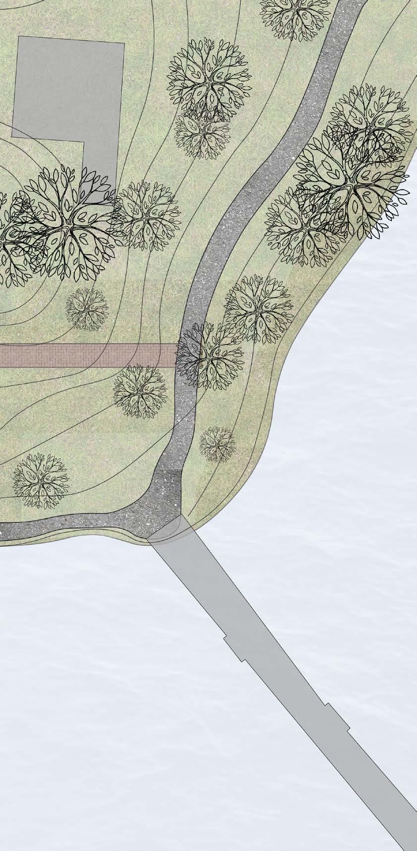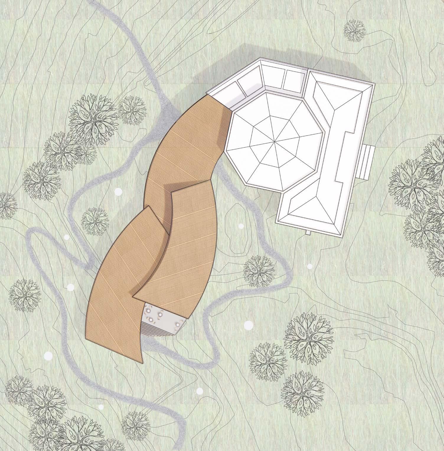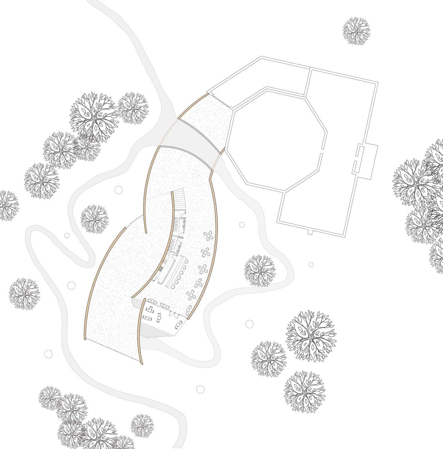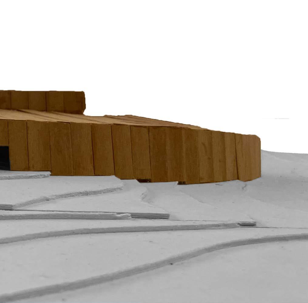 Over time the untreated warm oak wood color will weather and become gray. This will cause it to fade to a similar shade of gray as the existing concrete structure. As the wood weathers it will symbolize a surrender to the natural environment and surrounding landscape.