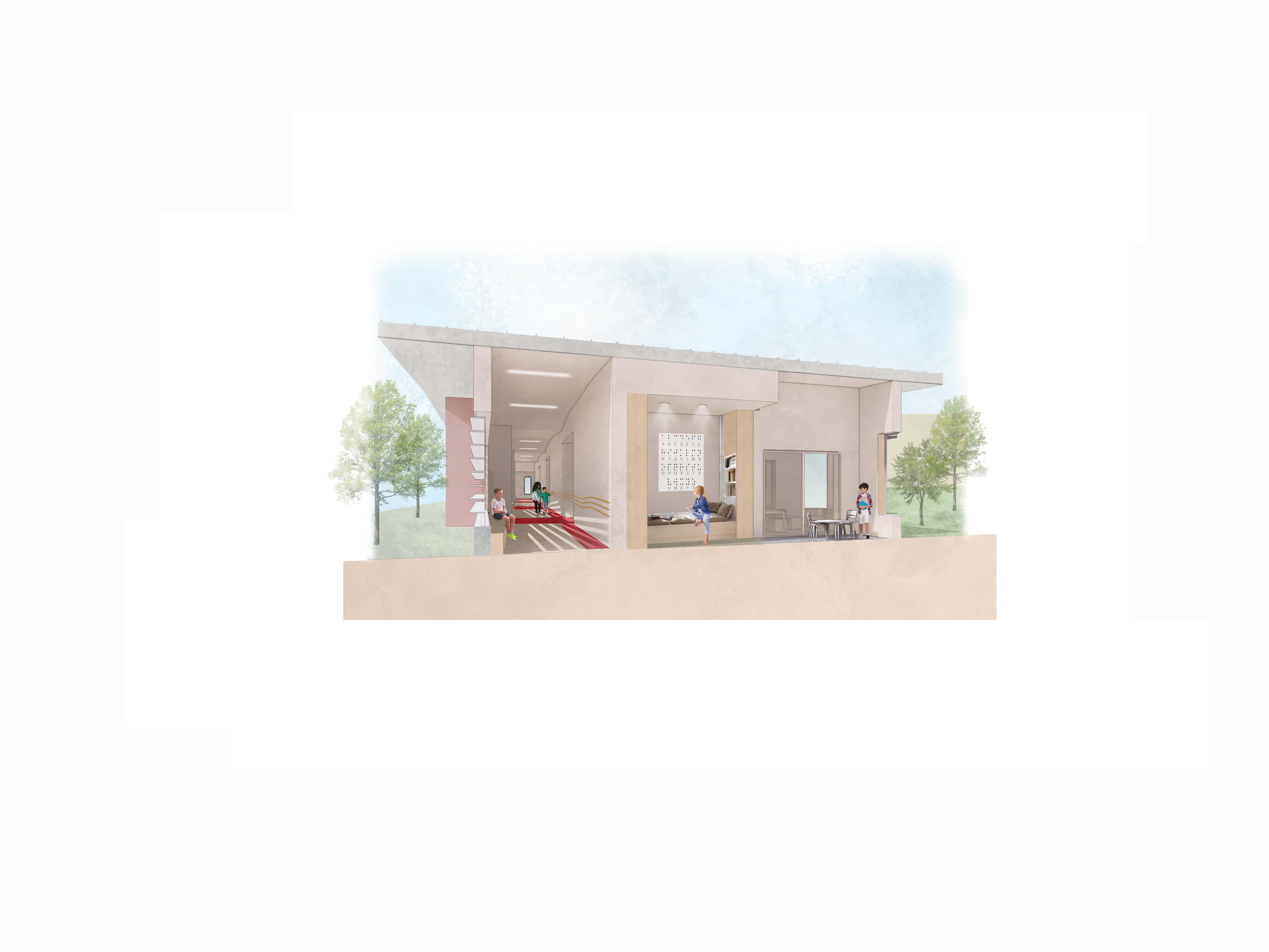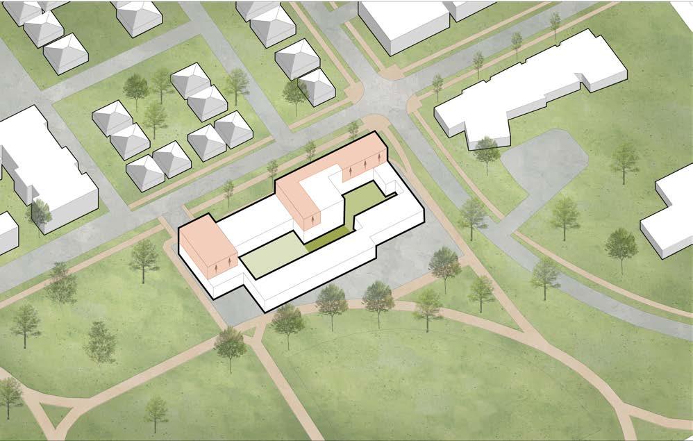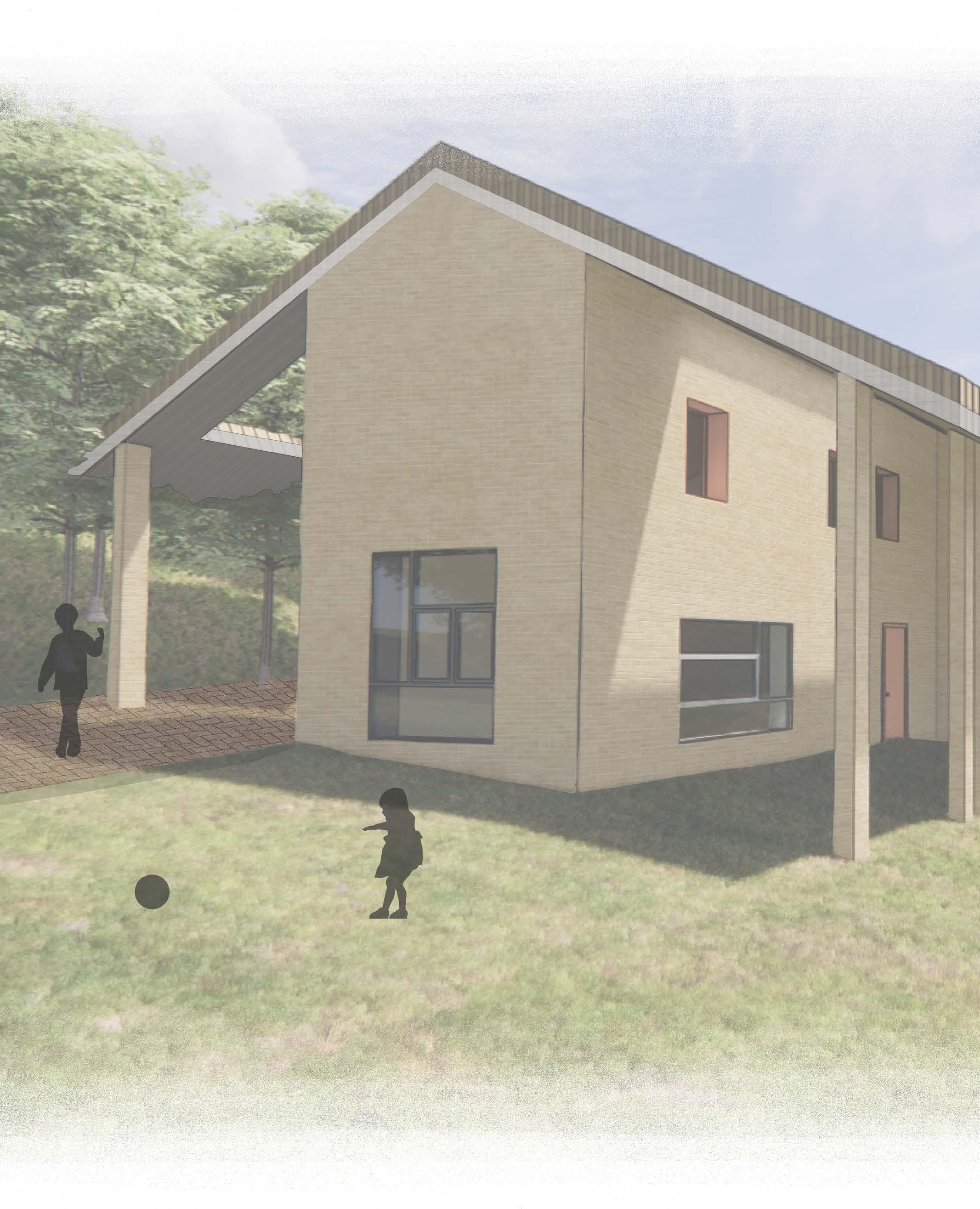 central courtyard forms to provide private play space and seperate classrooms from more public areas.