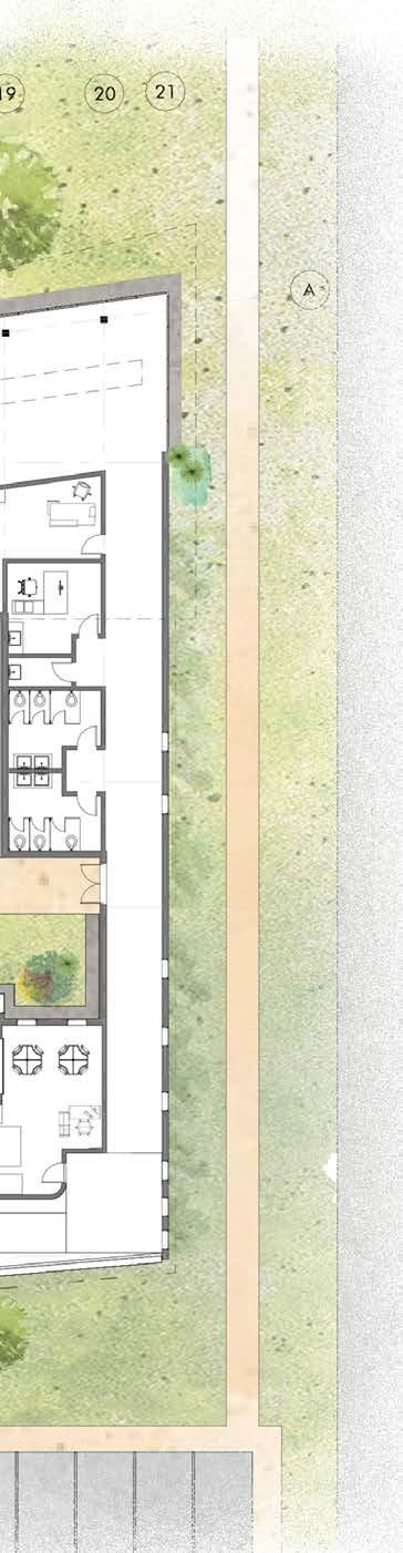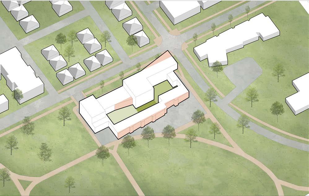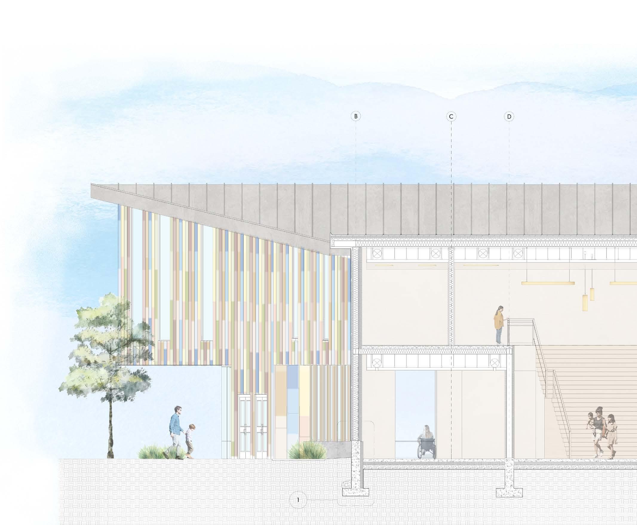 angles the large front angle reaches out to invite the community in, while the courtyard + southern angles provide a playful wayfinding experience