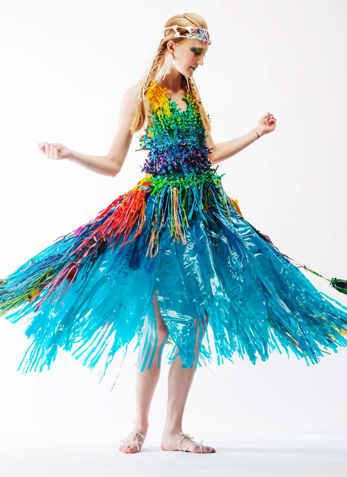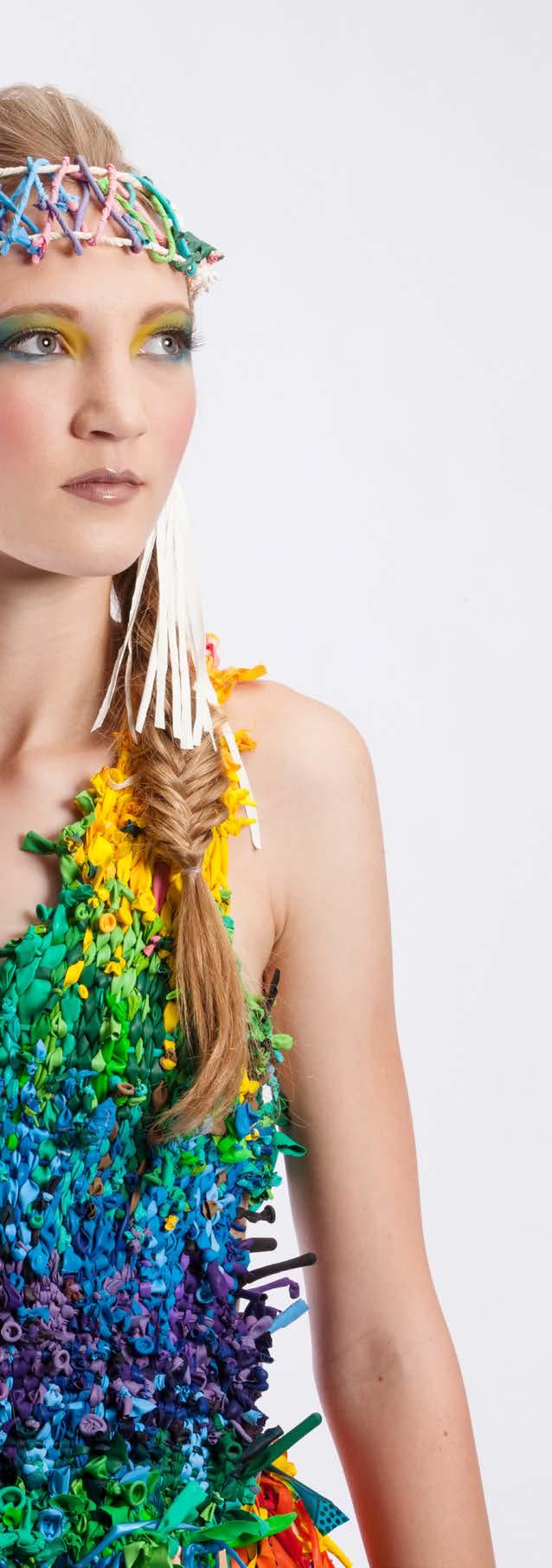 Recycled Runway is a fashion design competition where participants create an outfit that consists of items that would have otherwise been thrown away. For this project I worked with local balloon artist, Finn Thompson, and asked him to save popped balloons from his projects. I used these popped balloons, which would have otherwise been thrown away, to create my piece. My design simultaneously symbolizes the waste of the natural resource helium and the damage that balloons can cause to the environment.