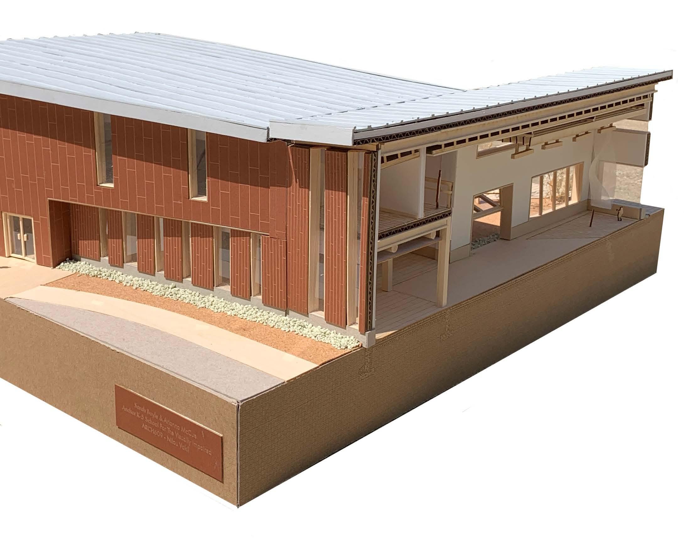 pushing & pulling forms are extruded to define the building footprint, divide the courtyard into three functions, and create a central hallway that shields classrooms from intense southern sun