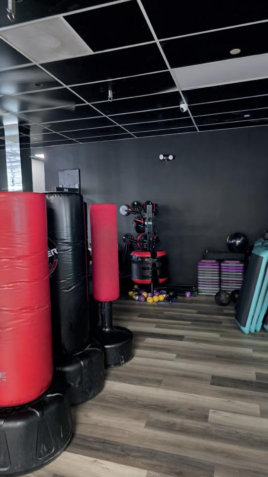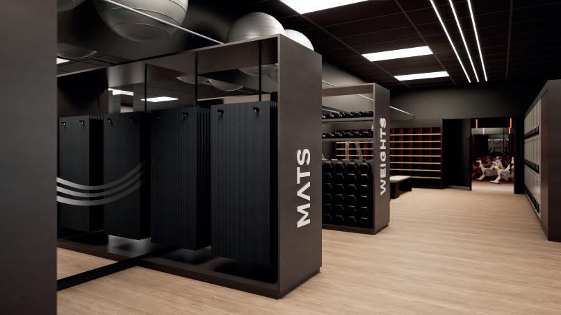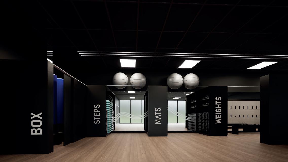 The project involved designing a storage area to organise various equipment used in gym activities, such as steps, mats, balls, boxing accessories, and weights. It also included the design of a spinning room with its shoe-changing area, and a locker zone.