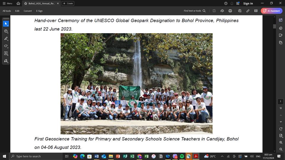 Din, K. M., Bohol Provincial Environment Management Office, Aumentado, E. A. C., Yap, A. C., Yap, A., & Relampagos, R. (2022). PROGRESS REPORT (A. Amorfini, K. Rangnes, & J. B. Ganub, Interviewers). In Geopark & UNESCO, Bohol Island Aspiring UNESCO Global Geopark. https://drive.google.com/file/d/1N8-qLmODV8VoG1pC3aqz-zO9d19b-J0p/view