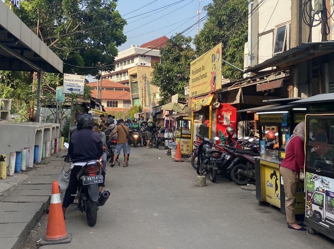 pelebaran trotoar - dikelilingi area komersil - angkot berhenti sembarangan - ojek mangkalditrotoar-restokecilmemanfaatkantrotoaruntuklahanparkir-kiosrokokpada trotoar