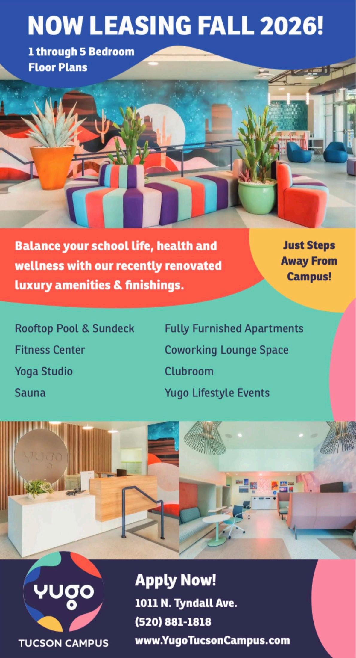 The advertisements in this magazine are for informational purposes only and do not constitute endorsement of services by The University of Arizona © 2026 Arizona Student Media