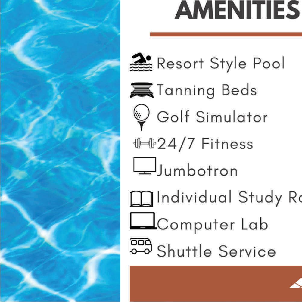 24-hour, state-of-the-art fitness center All utilities included Individual liability leases and roommate matching available