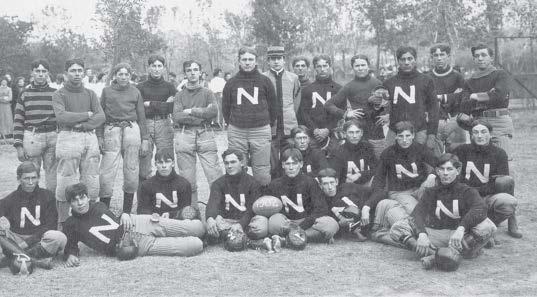 The 1902 team wore pads inside the uniforms, leather helmets, a knit jersey against the skin and a turtleneck sweater with “N” for Normal School.