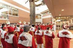 On the Cover: Chancellor Charles Robinson, students and faculty call the Hogs during a preinvestiture rally.