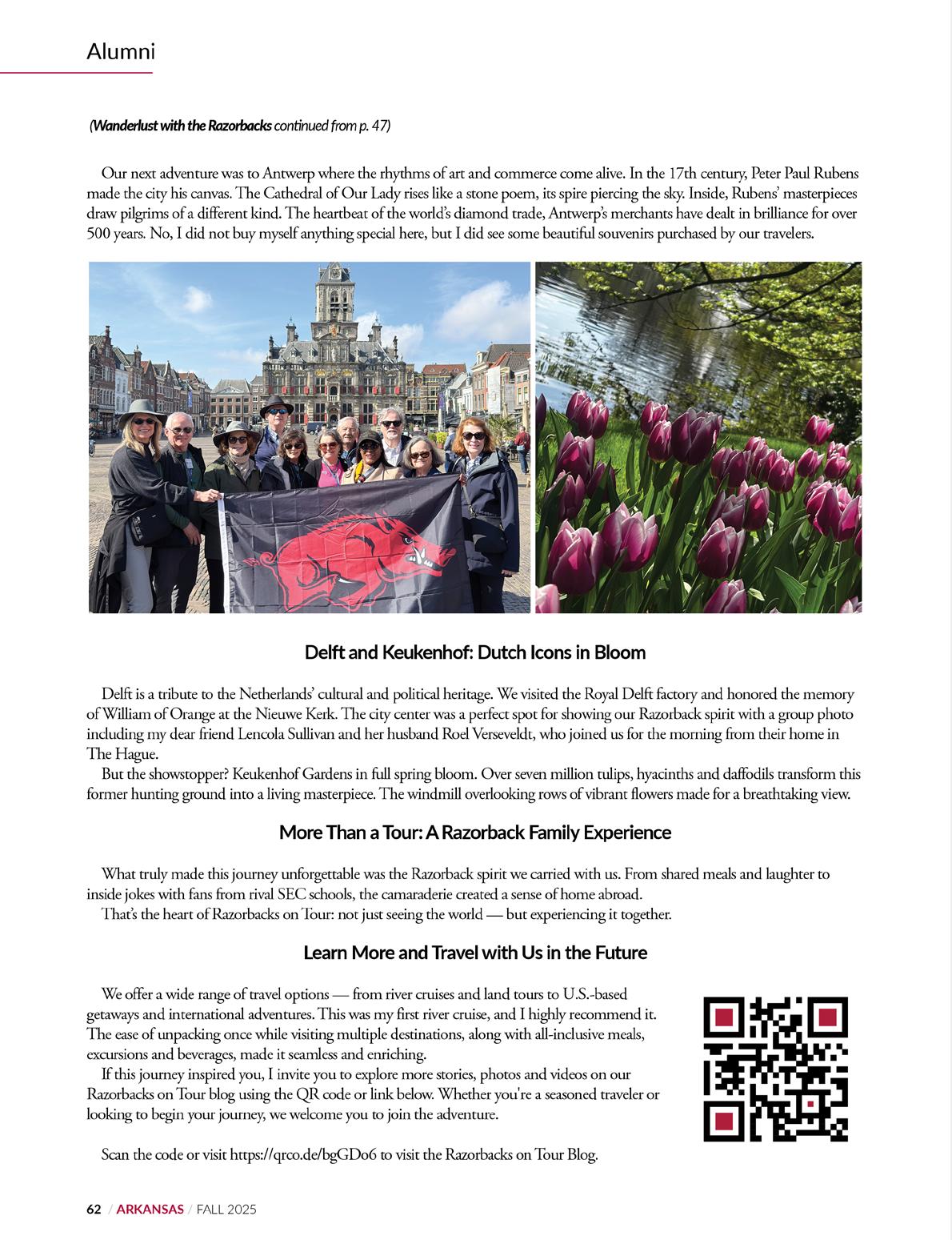 Members, alumni, friends and family – anyone can travel with Razorbacks on Tour.
