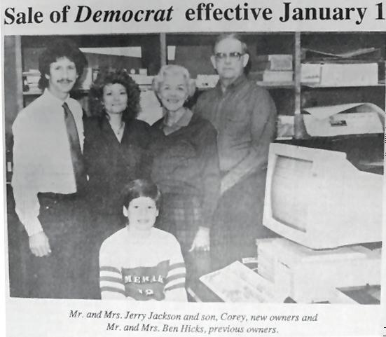 Ben W. Hicks owned the newspaper when Jackson landed the job. Ironically, the newspaper had switched to offset printing just a few weeks before but still maintained a vital job printing business. After he had been there a few years, Hicks suggested that Jackson could acquire the publication through regular mortgage payments at some point. That happened in 1989, and Jackson spent 16 years satisfying the agreement.