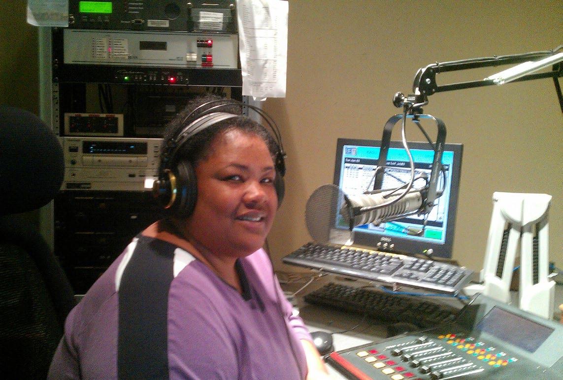 radio/television, the first in her family to obtain a college diploma. Her first job after college was as a reporter for the Silver Star News, an African American newspaper in Memphis. She then moved to Jackson, Tenn., where she worked in a variety of positions at a newspaper, radio stations and a television station. One of the breaks in her career came when she called a radio station in Jackson at 4 a.m. to make a song request (Peabo Bryson). The DJ said he really liked the sound of her voice and asked if she might be interested in a job at the station. He invited her to meet with the owner, James Wolfe, and he hired her on the spot. They remained good friends over the years until his recent death. Her initial work at the station was DJing a “love song” format late at night.