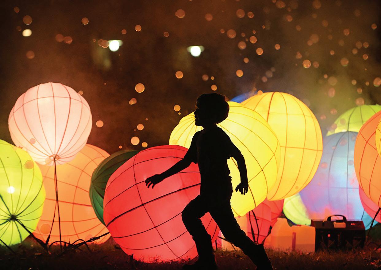 A child runs through a cloud of bubbles during the annual GloWild event Thursday at the Little Rock Zoo. The lantern festival will light up the zoo on select nights from Nov. 16 to Jan. 7, 2024. More photos at arkansasonline.com/1117glowild/.