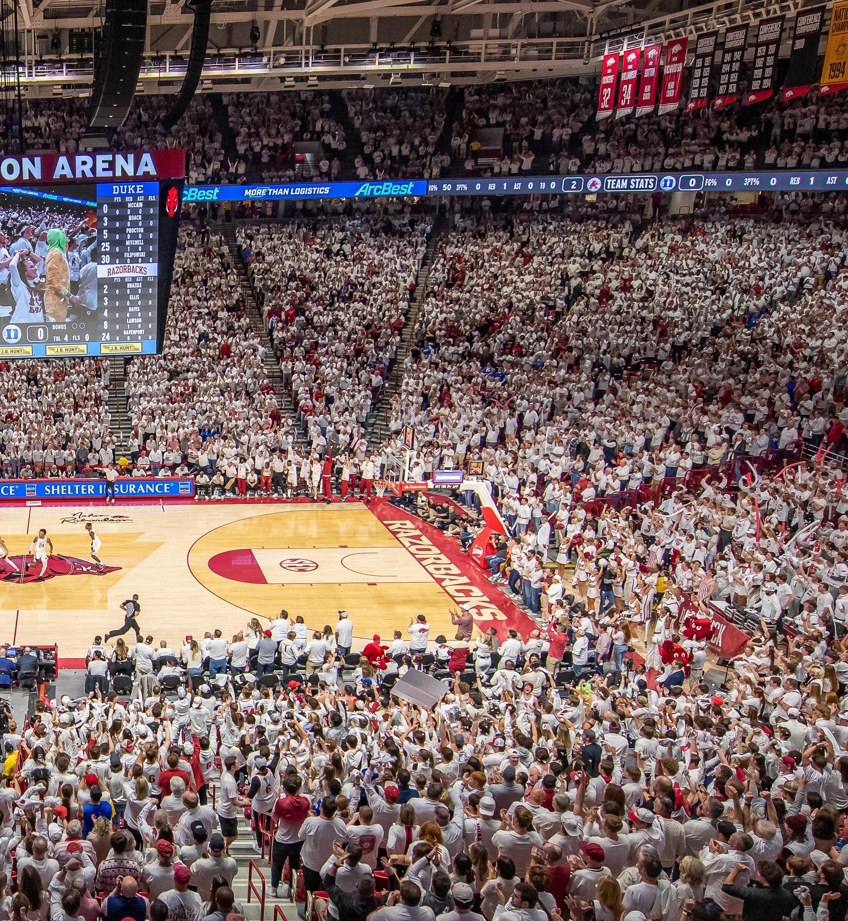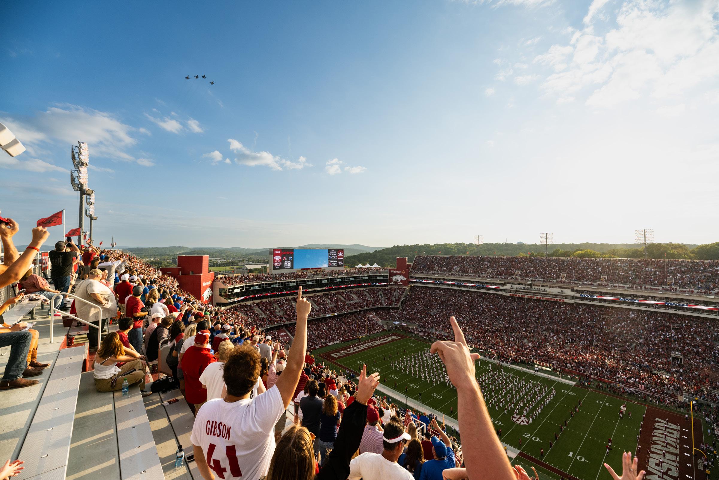 CUE THE JETS: Hog fans count down to the kickoff against Brigham Young University at Donald W. Reynolds Razorback Stadium in September 2023.