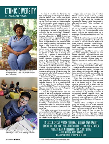 The face of our state, like that of our nation, is changing. In order to provide the best possible medical care, health care professions must represent the populations they are serving. This has opened up opportunities for diversity across the board, including nursing. According to a scholarly article in the National Center for Biotechnology Information, U.S. National Library of Medicine, the U.S. is projected to become a majority-minority nation for the first time in 2043. Hispanics and African-Americans are all expected to increase substantially by 2060; in fact, one in three Americans is expected to be of Hispanic descent by that time. The Asian population is expected to double over that same span. America’s melting pot has never been larger or fuller than it is right now. Compare those general population projections to current nursing populations: In 2008, there were about 3 million RNs in the U.S., 85 percent of whom were in nursing positions. Only 17 percent of the RN workforce were people of color. However, that mix is quickly changing. According to a different study by the federal Health Resources and Services Administration, the supply of Hispanic RNs is projected to increase 83 percent between 2014 and 2030. Non-Hispanic black RNs are expected to increase 38 percent and all other non-Hispanic minorities are expected to grow 39 percent over the same period, all of which represents a faster growth rate than whites. Rani Simpson, RN, a graduate of National Park College in Hot Springs, is one of the new generation of nurses in this diversifying industry. Simpson, 31, is a traveling nurse with six years in the profession, having worked for CHI St. Vincent Hot Springs in the ICU and currently for Saint Mary’s Regional Health System ICU in Russellville. “Caring for people has always been important to me. At a young age, I remember watching my grandmother receive care from hospice nurses and knowing I wanted to work in health care,” she said. “My diversity has not presented any real challenges, thankfully. I have heard rude comments from patients and been told many stories regarding my ethnicity, but none of these have deterred me.” “I still get the same amount of comments and stories as I did when I began six years ago, but I just remember their thoughts and feelings are theirs, not mine. Their opinions don’t shape me. I take it all with a grain of salt.”