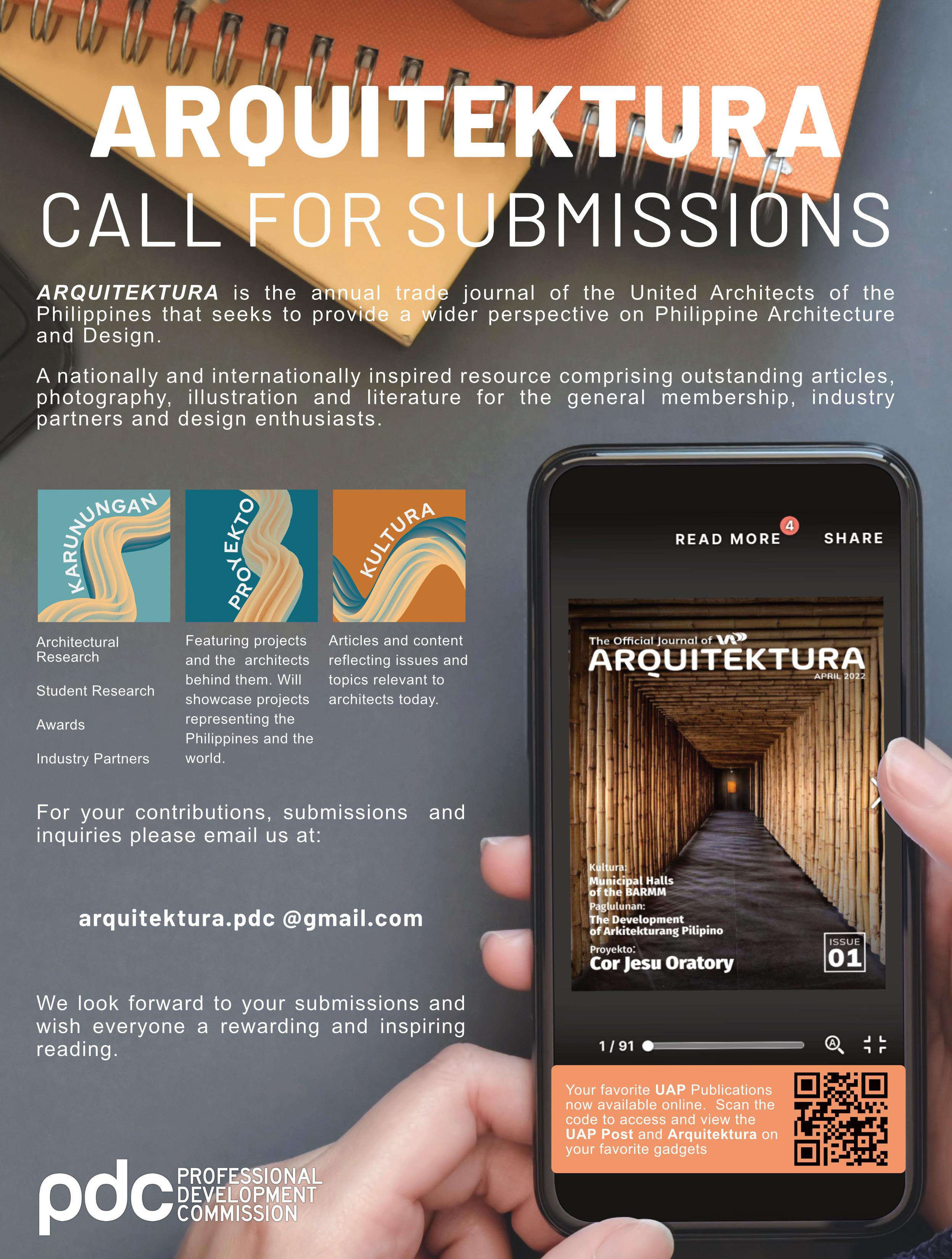 2) Globally Competitive Architects - the Competitions Committee will organize a design competition for the built environment with the goal of giving recognition to the achievements of UAP architects in the international stage and promoting the value of the profession;