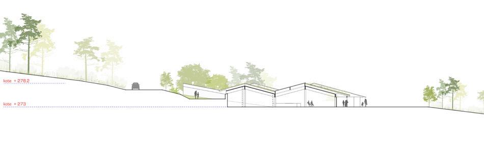 MODELLSTUDIER TAKLANDSKAP møner og gesimser følger landskapets fall og etablerer en myk men presis overgang mellom bygning og omgivelser.