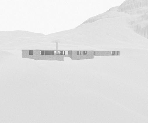 Byggets horisontalitet står kontrast til landskapets mektige vertikalitet, og ulike glimt av naturen kommer og går mens man beveger seg gjennom bygget. De vertikale elementene – søylene og den sentrale peisen – tiltrekker seg vår oppmerksomhet og trer frem som som koblinger til vårt forhold til naturen og friluftslivet.