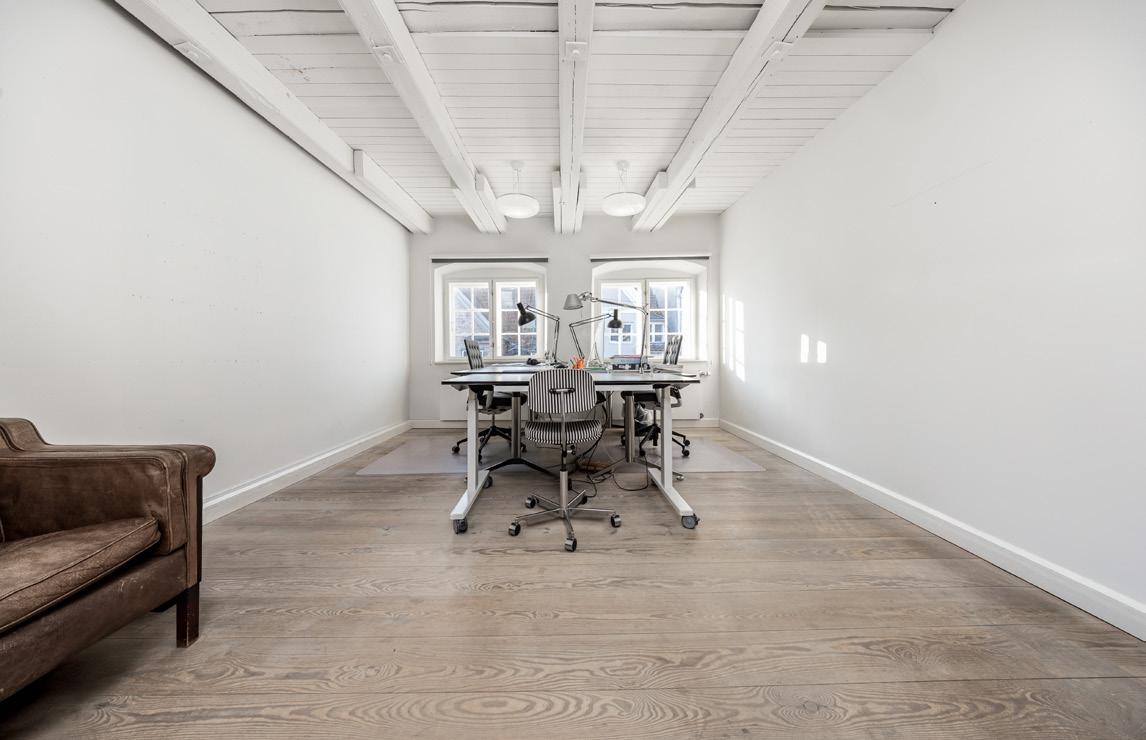 LEJEMÅLET PÅ 2. SAL Smukke plankegulve, fritlagte bjælker og udsigt til Åbenrå. Plads til ca. 14 arbejdspladser, 2 mødelokaler og lounge. Egen toiletkerne med 2 toiletter. Der er elevator i ejendommen og indgangen finder sted i husets smukke gård, hvori man også kan nyde sin frokost på de lune dage.