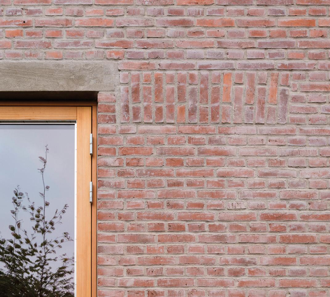 Ny åbning i muren, der nænsomt er blevet lappet og suppleret med genbrugte glaserede teglsten. KAPELLET GENFORTALT, Tegnestuen Verna, billedkunstner Julie Falk, forfatter og kulturgeograf Emmy Laura Pérez Fjalland, tegnestuen A part of Sum, kunstner og snedker Line Hvidbjerg, arkitekt MAA og murerlærling Lasse Buus, kunsthåndværker Karoline Bach Larsen, tegnestuen Hahn Lavsen, billedkunstner Rasmus Søndergaard Johannsen og billedvæver Marianne Noer samt kunsthistoriker Marianne Krogh og arkitekt MAA Sidsel Gelting Hodge, Arkitektforeningen. Foto: Laura Stamer
