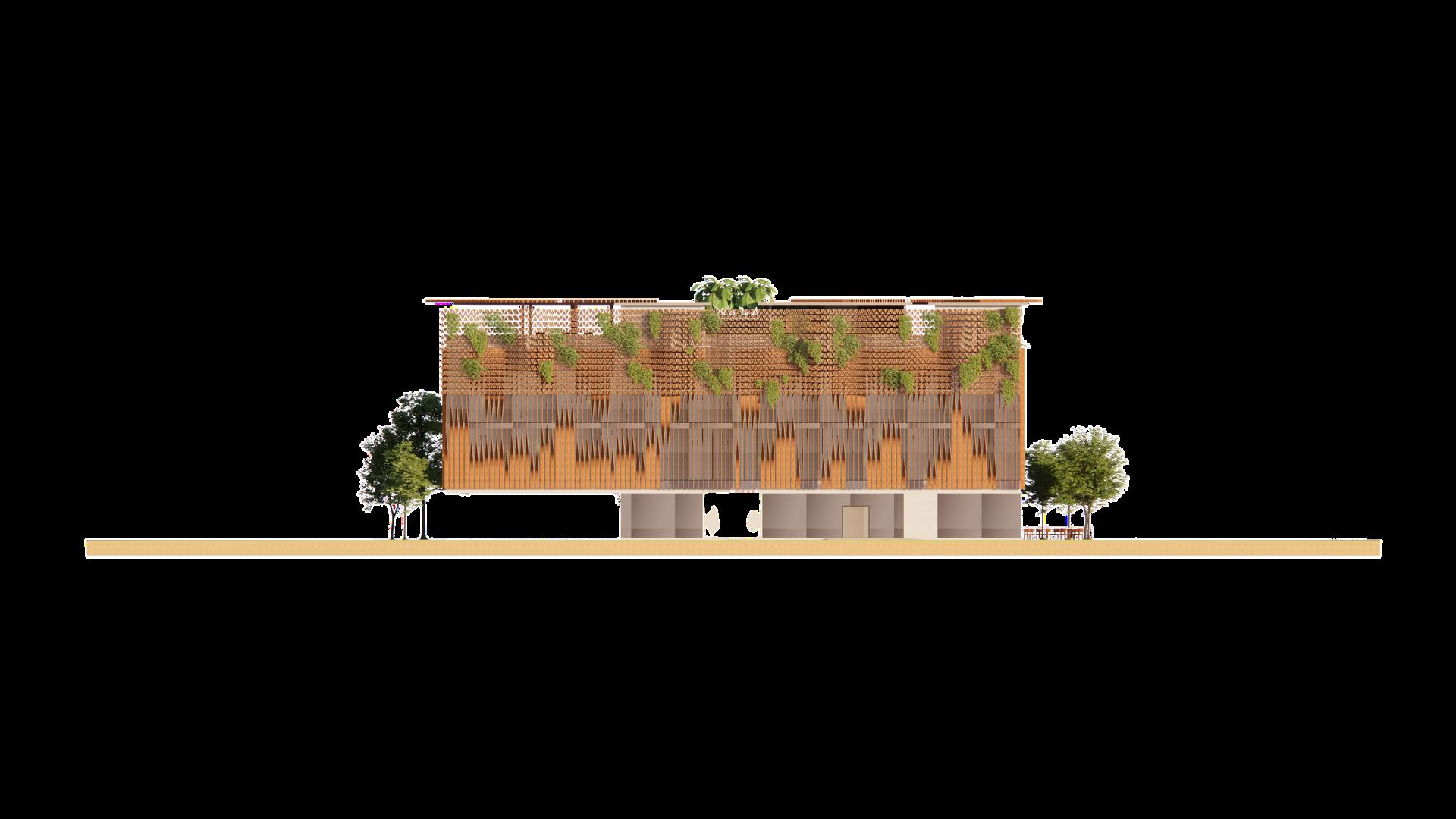 Withthis,thedesigntakesinspirationfromsicesof'bukopie,whichisoneofLosBañosmostfamous delcaciesTheformofthebuidingdepictstwoslicesofbukopetogetherInaddtonthecrooked characteristicofMountMakilngwasalsoadoptedtoitsfacadetoformawavysunshade