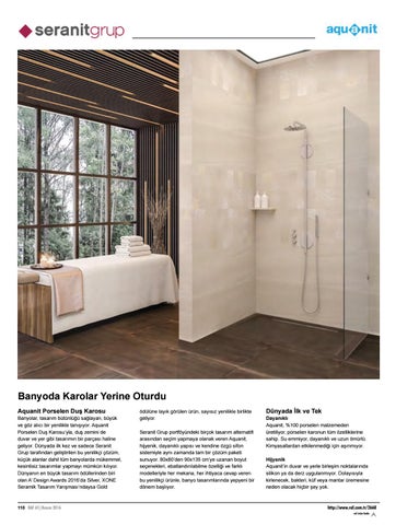 Banyolar, tasarım bütünlüğü sağlayan, büyük ve göz alıcı bir yenilikle tanışıyor. Aquanit Porselen Duş Karosu’yla, duş zemini de duvar ve yer gibi tasarımın bir parçası haline geliyor. Dünyada ilk kez ve sadece Seranit Grup tarafından geliştirilen bu yenilikçi çözüm, küçük alanlar dahil tüm banyolarda mükemmel, kesintisiz tasarımlar yapmayı mümkün kılıyor. Dünyanın en büyük tasarım ödüllerinden biri olan A’ Design Awards 2016’da Silver, XONE Seramik Tasarım Yarışması’ndaysa Gold