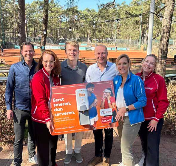 ‘Eerst smeren, dan serveren’ – met deze slogan trapten KWF Kankerbestrijding en de KNLTB afgelopen voorjaar hun partnership af. Zeker 450 verenigingen kregen van KWF gratis dispensers met zonnebrandcrème van La Roche-Posay en promotiemateriaal om tennissers en padellers bewust te maken van het belang van zonbescherming. “Met deze samenwerking willen we zonbescherming op de baan net zo vanzelfsprekend maken als een warming-up”, zegt Yvette van de Graaf van KWF.