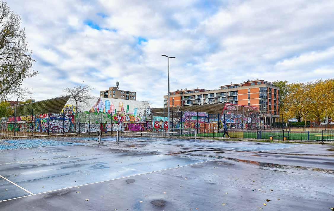 dempte het geluid voldoende, maar zou voor de nieuwe bebouwing en de nieuwe banen niet meer toereikend zijn. Fuseren en ruimte maken voor woningbouw was dus een optie, mits er een écht goede buffer richting de nieuwe woonwijk zou komen. Dat is de overkapping geworden. Ook werd afgesproken dat er twee extra tennisbanen, drie padelbanen en een jeu-de-boulesbaan – voornamelijk voor ouderen, die op een gegeven moment wellicht minder in staat zijn om te tennissen of te padellen – bij zouden komen. Er gingen immers twee verenigingen samen en er moest wel voldoende speelgelegenheid blijven.