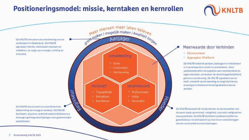 Ook binnen de KNLTB zetten we stappen. Met het spelersplatform en een spelers-ID werken we aan een frictieloze sportervaring: één app, één toegang, één plek waar alles samenkomt. Voor spelers én aanbieders. En met de nieuwe indeling voor de Tenniskids-competitie en -toernooien – waarbij kinderen nog beter op niveau worden ingedeeld – zorgen we voor eerlijkere wedstrijden en meer spelplezier. Want plezier is de basis voor binding, ontwikkeling en blijvend lidmaatschap.
