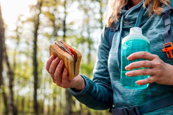 Als je voor een uitdagende langeafstandswandeling gaat, luister dan goed naar je lichaam wat voeding betreft. Eet voldoende, zodat je steeds over genoeg ‘brandstof’ beschikt. Je hoeft niet te wachten met eten tot je honger krijgt. Probeer tijdens je training uit wat voor soort eten goed bevalt. Koolhydraatrijke tussendoortjes kunnen voor een oppepper van je energieniveau zorgen. Geschikte