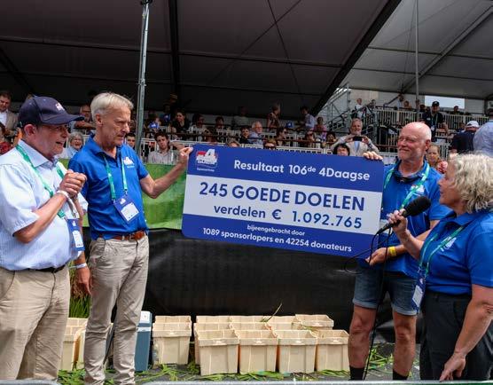 Tijdens de 106e editie van de Nijmeegse 4Daagse hebben 1.089 sponsorlopers hun kilometers ingezet voor goede doelen en daarmee opnieuw een recordbedrag opgehaald. Op de Via Gladiola werd aan het bestuur van Stichting De Vierdaagse Sponsorloop een cheque overhandigd ter waarde van 1.092.765 euro. Dit bedrag is het hoogst sinds de start van dit initiatief en komt ten gunste van 245 goede doelen. De Vierdaagse Sponsorloop is dertien jaar geleden in het leven geroepen zodat 4Daagsewandelaars op een eenvoudige wijze hun prestatie kunnen koppelen aan een door hen zelfgekozen goed doel. In al die jaren (inclusief deze editie) is er een bedrag van ruim zes miljoen euro opgehaald.