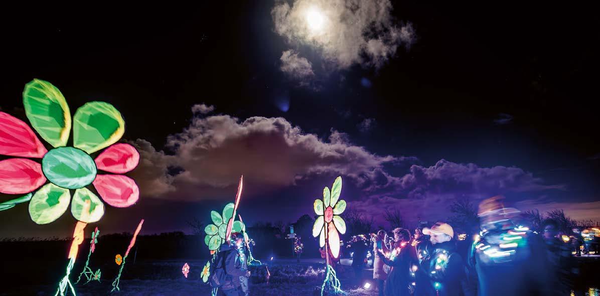 lichtjeswandeling bij zonsondergang in de sprookjesachtige bossen en het park van kasteel Rosendael. Schrijf je snel in via reumalightwalk.nl of scan de QR-code.