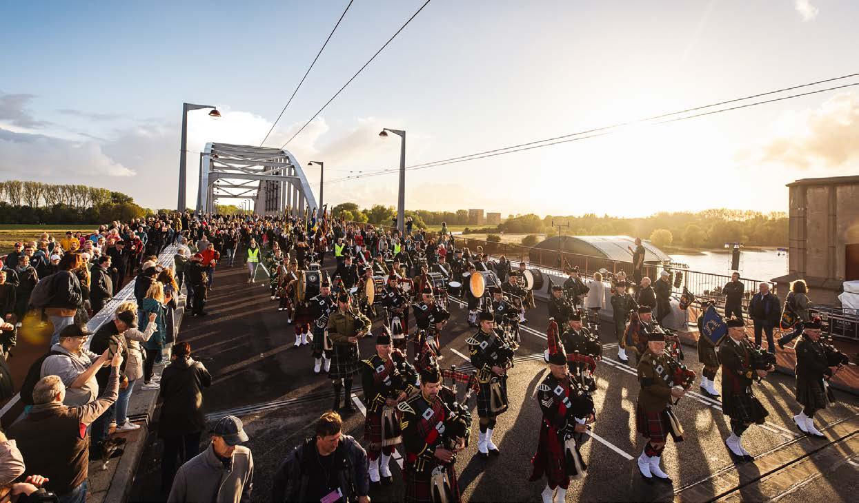 naar de Airborne Region en eindigt bij de John Frostbrug in Arnhem, waar Operatie Market Garden stokte. De laatste etappe, op vrijdag 20 september, loopt vanaf Oosterbeek de route van de manschappen van John Frost richting de beroemde John Frostbrug in Arnhem. Speciale gast is Caroline Frost, de dochter van John Frost, die de laatste kilometers van het Vrijheidspad in de voetsporen van haar vader mee zal meelopen. De finish van het Vrijheidspad sluit aan op de herdenking van de Slag om Arnhem en Bridge to Liberation bij de ‘Bridge too Far’ in aanwezigheid van veteranen van de Tweede Wereldoorlog en latere missies. Deze avond is via tv en een livestream live te volgen.