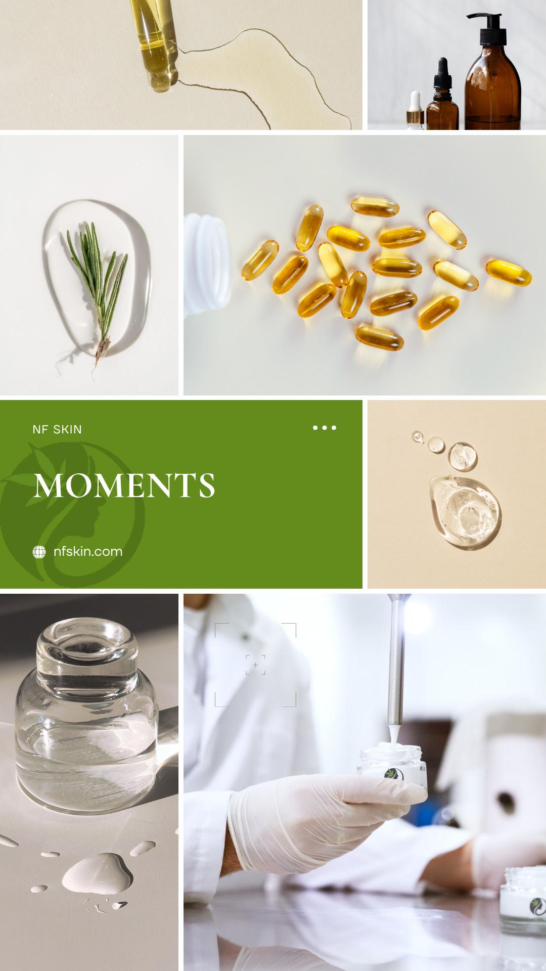 NF Skin should utilize clean and stunning imagery across our media and print designs, focusing on showcasing our skincare products and containers in the most captivating way possible. High-resolution images that highlight the textures, colors, and details of the products will help convey quality and sophistication.
