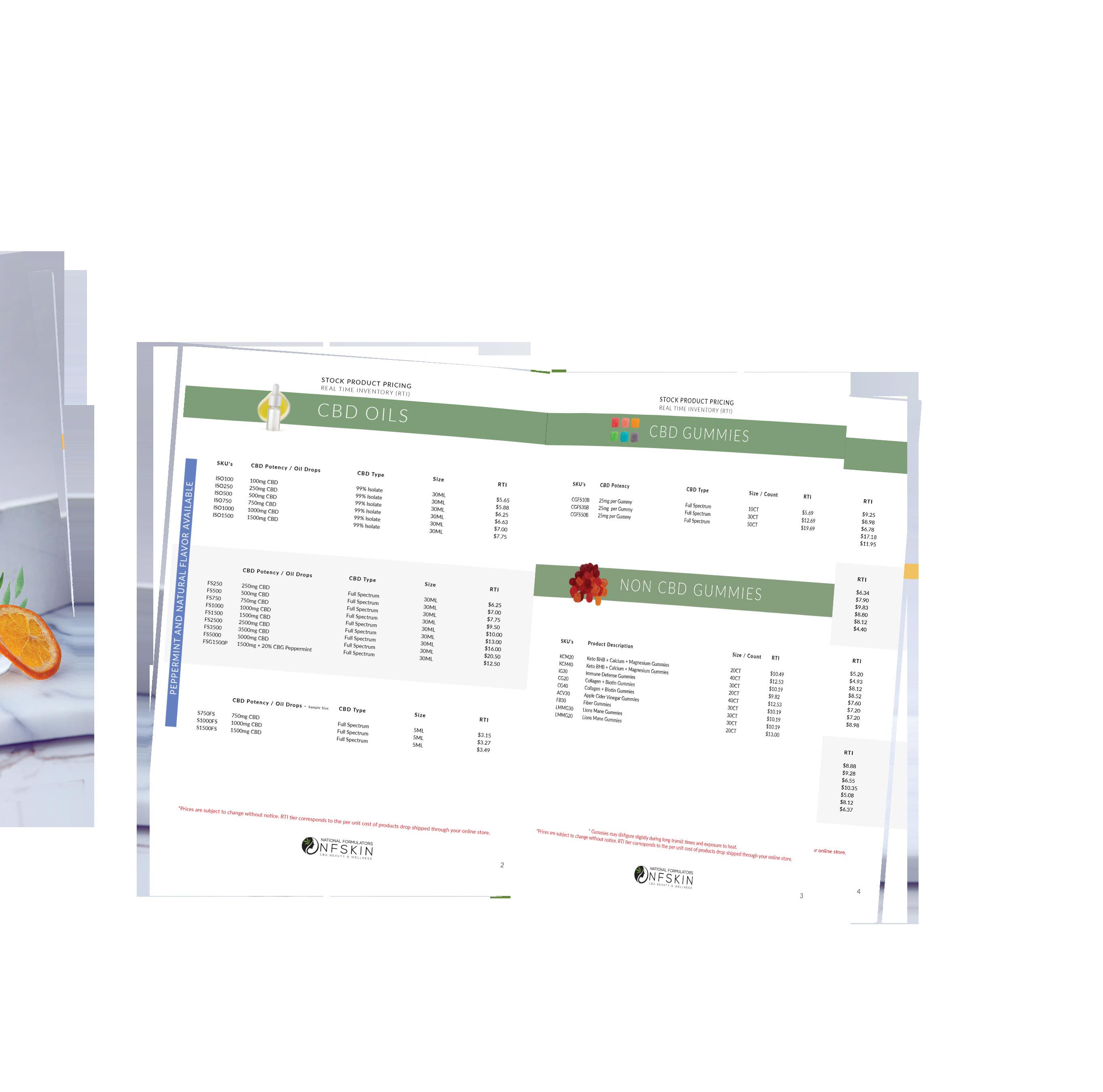 Each product is presented with concise descriptions and pricing details, complemented by subtle branding elements that convey professionalism and reliability. With its user-friendly design, our price sheet enables clients to quickly select the perfect products.