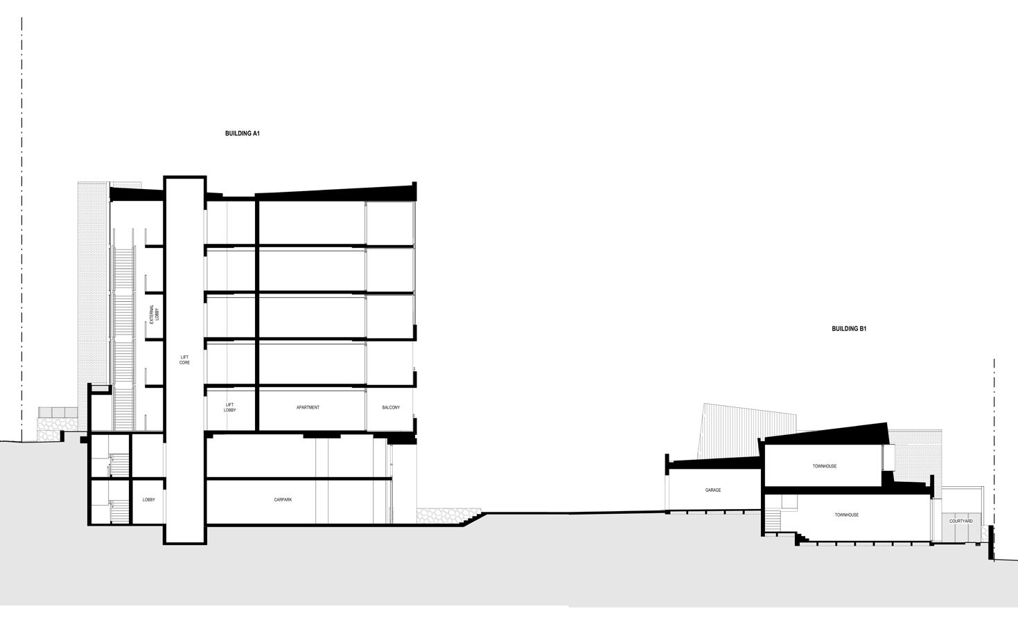 Marlu is a multi-residential development including 119 apartments and 20 townhouses. Arranged along both horizontal streetscapes, a garden in between, buffers the two living typologies. Whilst a pool, outdoor dining and gym are positioned on the adjacent axis. The apartments present large offset white boxes that open northern views, along the street edge, brickwork and metal planes aim to promote privacy for the residents. Nestled below, the townhouses present angler articulation and sections of dark finishes on the grounding, yet lighter finished brickwork walls – capturing individual identity.