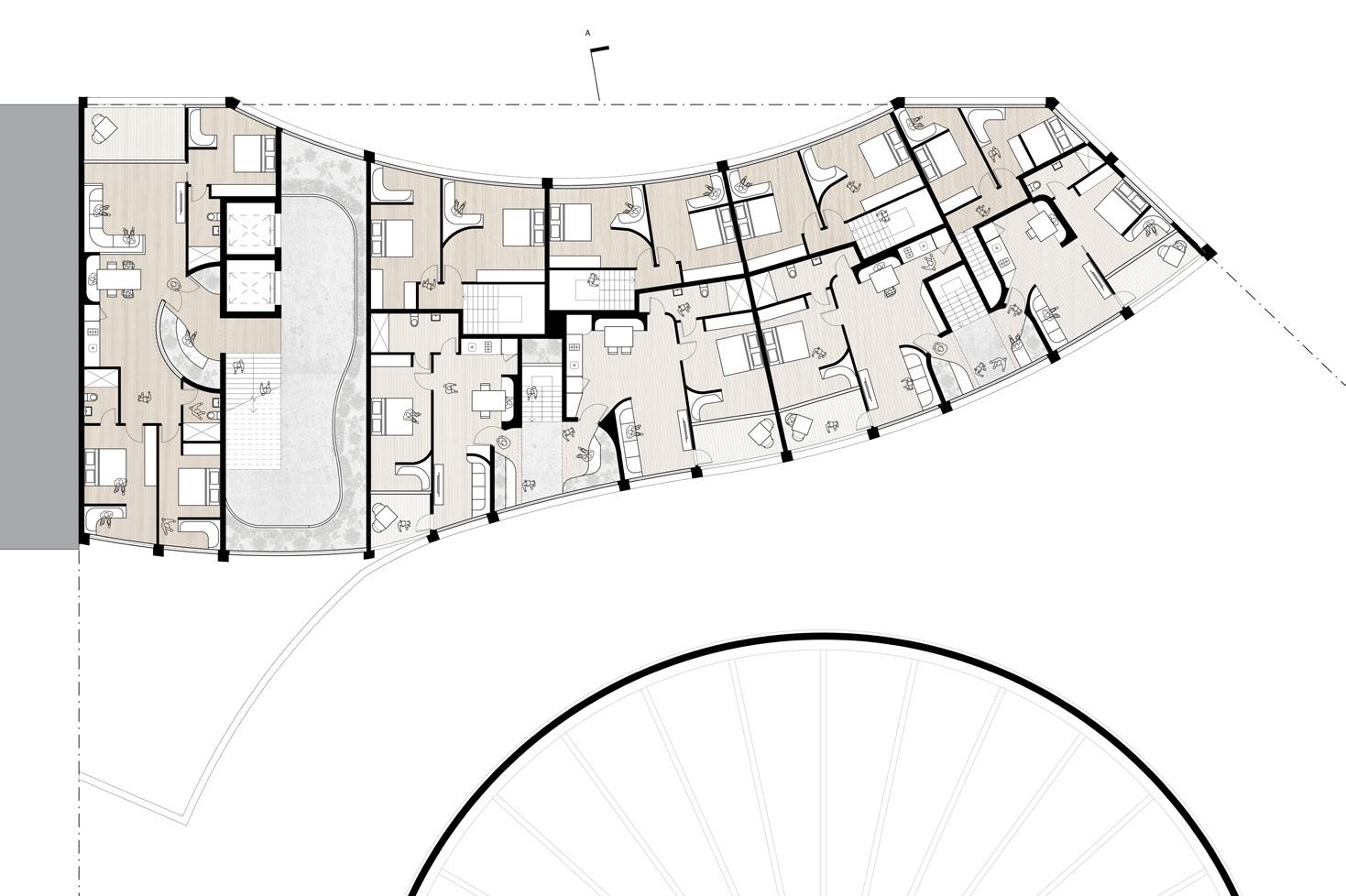 Diagrammatic design objectives set to provide a controlled integration of user groups and apartment living that promotes a sense of