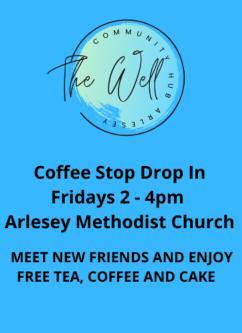 The Well Co ffee Stop welcomes all ever y Friday afternoon bet ween 2-4pm at Arlesey Methodist Chapel. The team include creative elements for you to look at or tr y ou t. Come and enjo y some free refreshments and a friendly atmosphere. Call 07747042239 for more information.