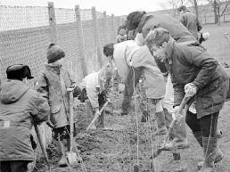 ACORN’s f irst venture into mass planting a hedge interspersed with specimen trees [no t sure where some o f them went] was under the go vernment’s Green Sites programme Under the guidance o f The Her tfordshire Groundwork Trust it organised the hedge and tree planting round the council’s playing f ield Go and take a look at it no w This was under taken with help f rom Go thic Mede School Ho w many o f you gro wnups remember taking par t when you were at Go thic Mede? The Green Sites programme was set up for communities that had been scarred by mining and quarr ying to help them become greener pleasant places to live. The Green, opposite the Eagles, was also landscaped by ACORN under the same initiative as was Woodland Chase. The scheme also funded ACORN’s hedgelaying training with a master hedgelayer which was mentioned in last month’s ar ticle