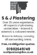 8 To contact the Arlesey News Magazine please call 01462 731986 James’s Carpentry & General Handyman Service T: (01462) 234292 or 07887 871212 Exterior & Interior Property Maintenance * Decorating * Furniture Building * Painting * Carpentry & more * Carpet Cleaning FREE QUOTATIONS