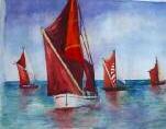 Firstly, thank you to ever yone who called in to see our ar t and craft work in the Roecroft Centre earlier this month! We thoroughly enjoyed having the oppor tunity to showcase some of the work we do and we hope you enjoyed looking at it There's a touch of red in this month's paintings, to brighten dull days. Barbara Hook's wonder ful train is steaming through a wintr y landscape and Carolyn Monaghan has featured the red sails of vintage Thames Sailing barges. These beautiful craft are seen here racing off the sunny Essex coast near Maldon Both paintings are in watercolour