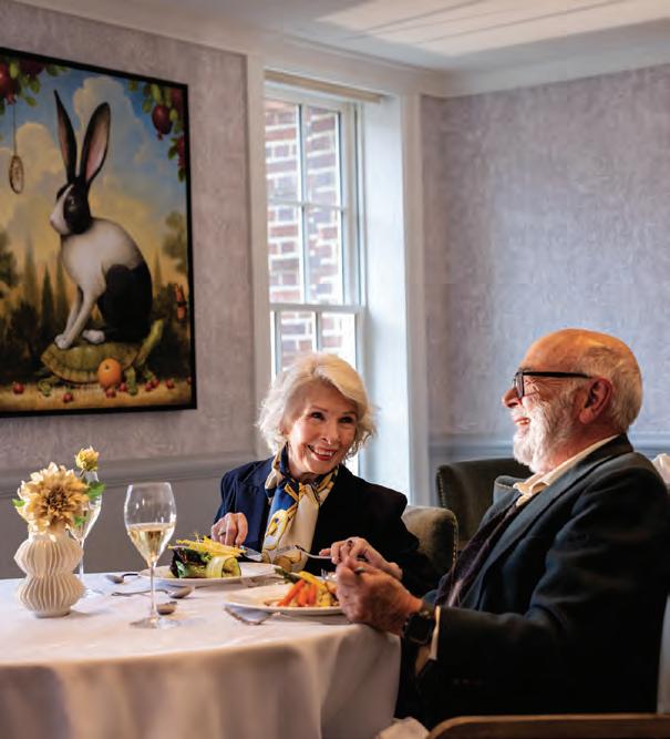 Another lodging option, the twolevel, two-bedroom Carriage House Suite, feels like a home away from home with a full kitchen, leather sofa and chairs, fireplace, spacious