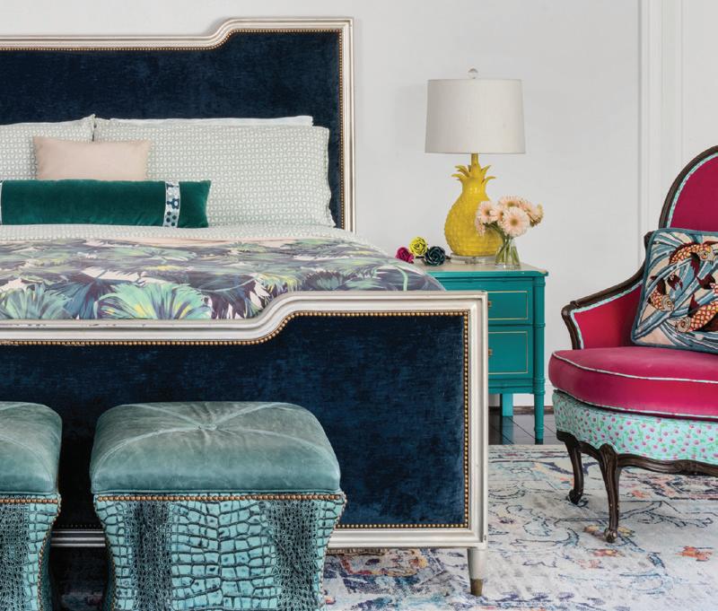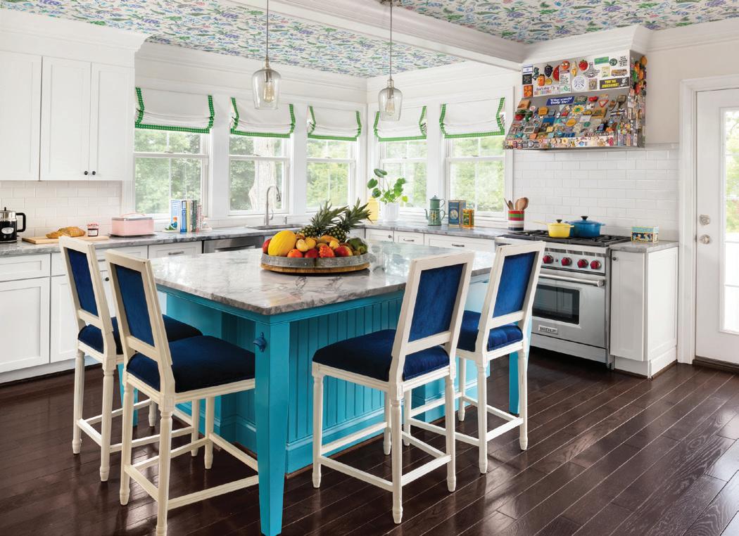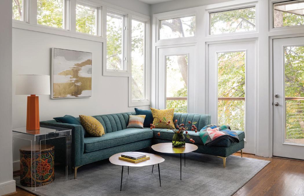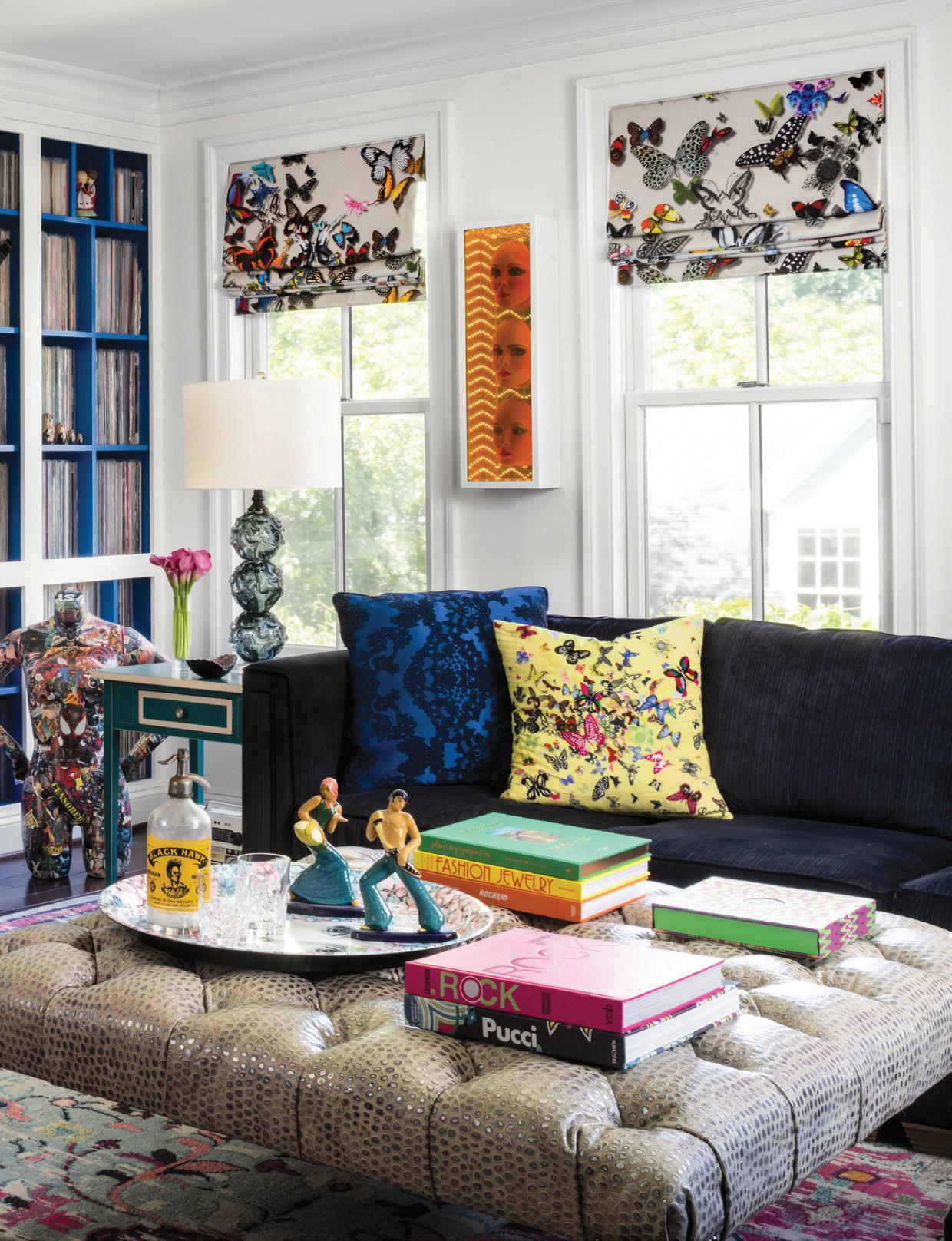 seasons. “Sometimes I go a little bit more pastel during the summers,” she says, whereas this fall prompted a dark green, blue and brown neutral palette. “In the winter, I’ll probably do something kind of stark, more like black and white.”