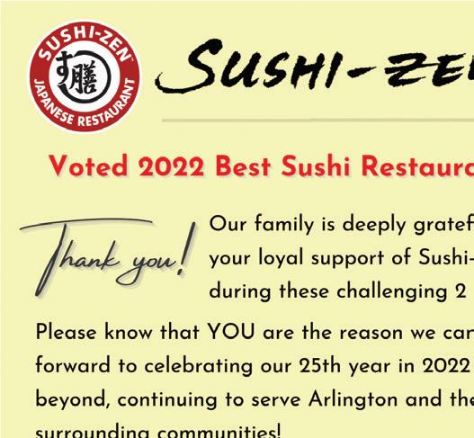 I hope you enjoy the January/February Best of Arlington issue. If you have story ideas or letters to the editor, please send them to jenny.sullivan@ arlingtonmagazine.com. If you have thoughts on how we’re doing or new things you’d like to see from us, email me at greg.hamilton@arlingtonmagazine. com. Have a wonderful holiday and best wishes for a happy, healthy 2022!