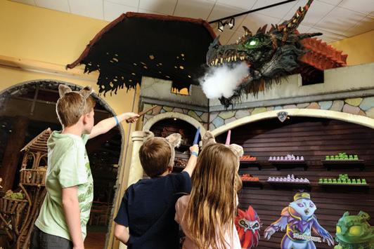 The fun on dry land includes the Ten Paws bowling alley, morning yoga for kids, animatronics shows at The Great Clock Tower, evening story time, Wiley Wolf character appearances, a 3D movie theater, a Build-A-Bear workshop (added in 2019), and MagiQuest, an interactive game with stations throughout the lodge where kids use magic wands to open treasure chests and light up crystals and clues. Quest games are $14.99; $15.99$21.99 for a wand. Families can also head outdoors for minigolf and a ropes course.